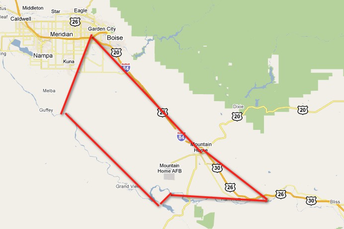From Boise (BOI) we blast off for Glenns Ferry (U89) stopping in Mountain home (U76) on the way. From Glenns Ferry we planed to follow the snake river until we’re directly south of Boise Airport (BOI), near swan falls damn. We really did intend to be at the market by 10AM but as normal things don’t always go to plan. Lucky for me I have one very supportive and understanding wife, I often think she must have amnesia because no one in their right mind would put up with this. 🙂