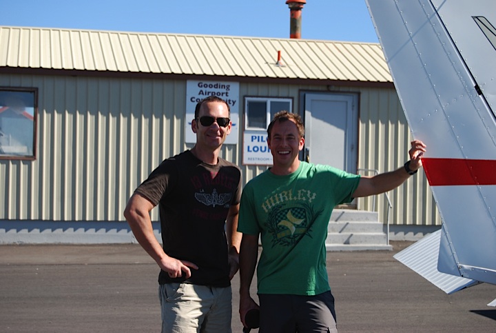 After following the road that leads out of Andersen Ranch Reservoir to the highway and then over the foothills back into the valley we spotted the Snake River and played with the map until we figured out where Gooding is located (there are not a lot of landmarks in this area). The pattern was good and I even remembered the carb heat which if caught by Niki I had to pay her $5 for missing it. After a smooth landing avoiding one of the many crazy crop-dusters found in this part of the country (which I would like to get to know) we taxed over to a little building and actually found one of the dirtiest indoor bathrooms I’ve even seen.